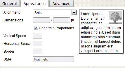 Insert - Edit Image - Appearance Tab